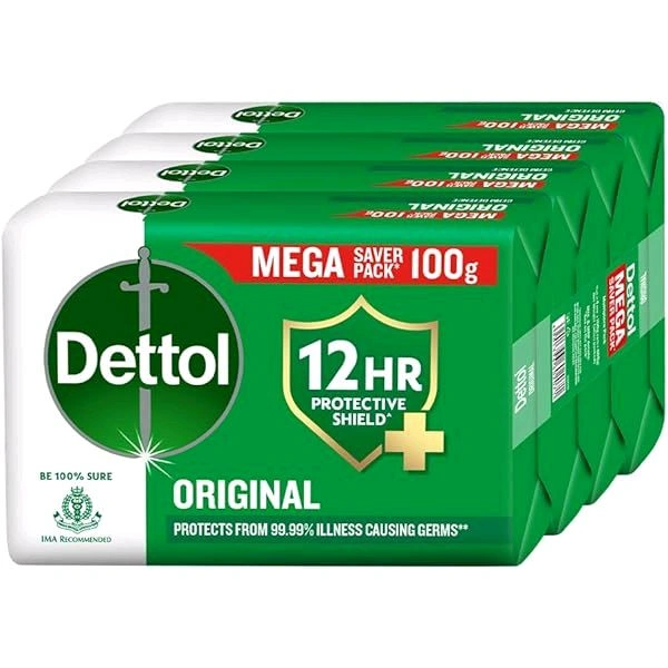 Dettol Original Germ Protection Bathing Soap Bar, 100g pack of 4